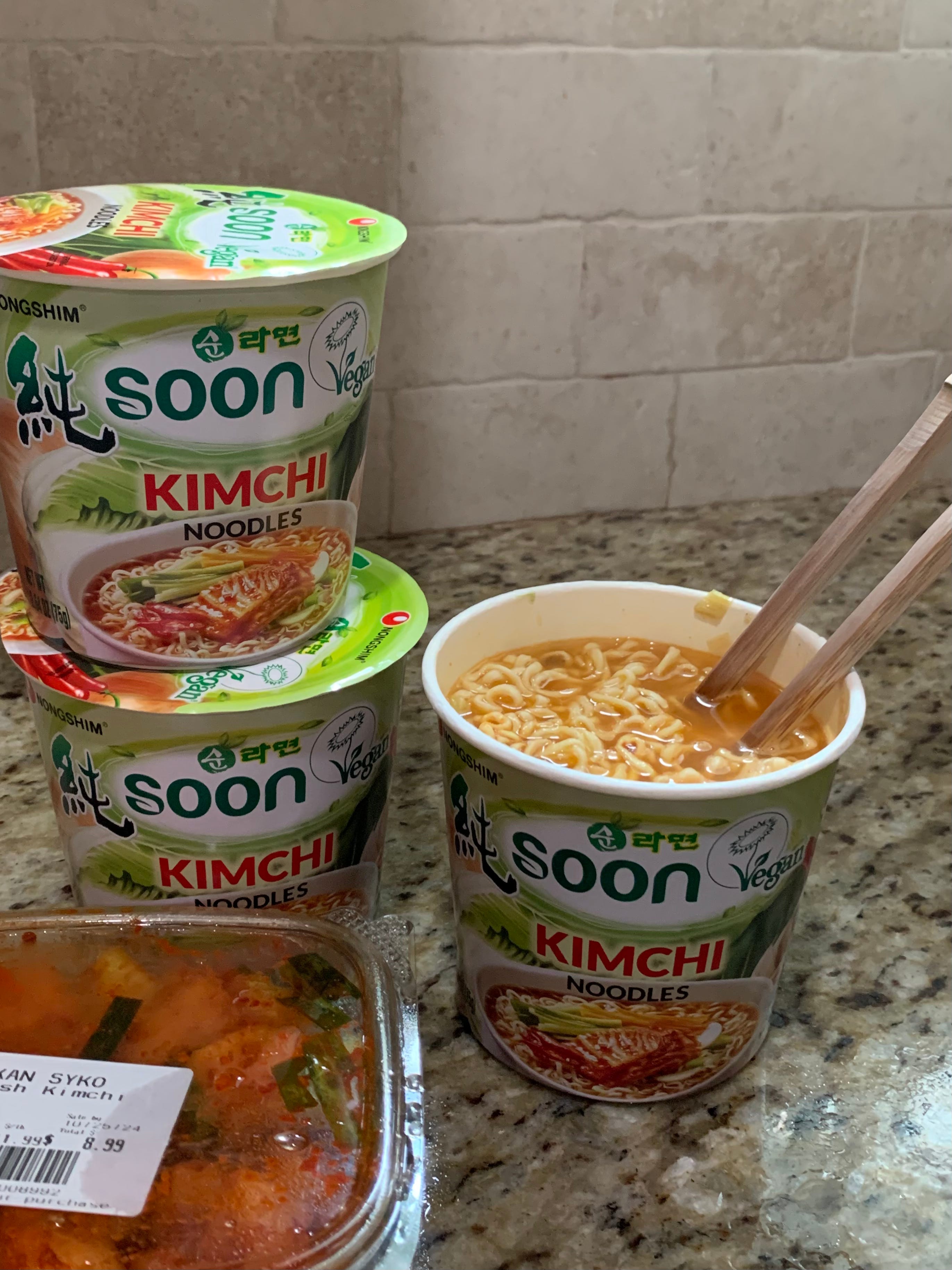 Have I not mentioned my favorite cup ramen before?? This has all the saltfatacidheat you’re looking for, and a slight pickled flavor from the kimchi. It’s not as insanely high in sodium as a lot of ramens, or inedibly spicy like the oh so popular Buldak. I’m consistently buying out the only two cups in stock at this store, so I think I might be carrying the Soon Kimchi Ramen industry on my back. I accept this responsibility🫡