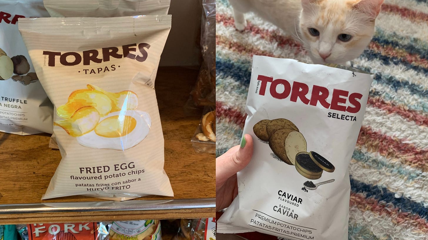 The sick minds at Torres flew a little too close to the sun with these flavors. It’s really a *dead dove do not eat* kind of situation – I don’t know what I expected. Why wouldn’t a bag of egg chips smell and taste like sulfur? Why wouldn’t the caviar chips be fishy? I can’t say that either are bad. They’re just weird. Like, yeah I guess that is what a fried egg tastes like, but I don’t want to think about it like that. The caviar chips are a little more normal, because they remind me of seaweed chips. Most of the other Torres chip flavors seem a lot more appetizing, so it’s probably my fault for reaching for these lil freaks instead of jamon.